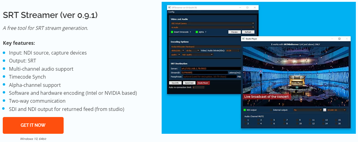 실무에서 사용하고 있는 프로토콜이다. 사용하는 이유는 NDI로 영상을 보냈을 때 내부 내트워크 허브 or 기타 이유로 프레임 드롭현상이 발생하여 NDI 대신 SRT로 사용하는 중이며 NDI의 프레임 드랍 문제가 완벽히 해결되었다.